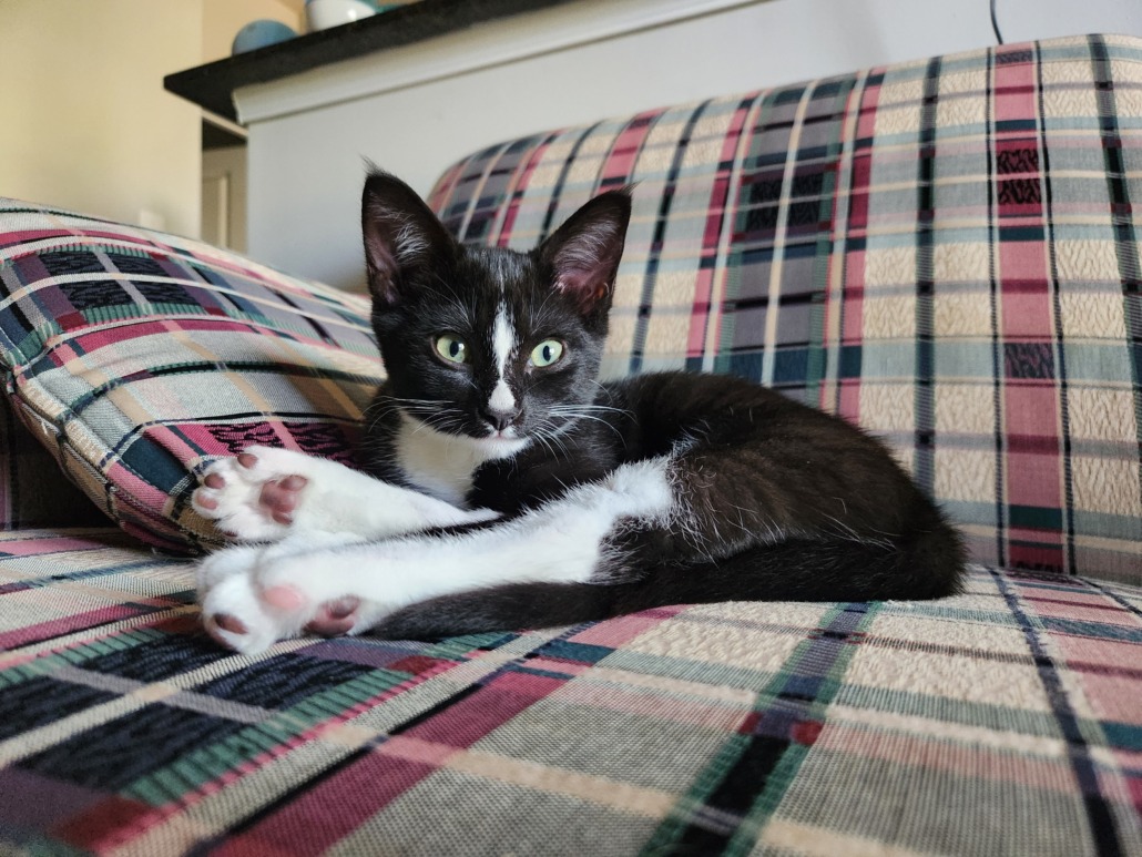 Sam is a 4 month old female tuxedo kitten. She weighs right around 6 pounds. She went missing near Stout Heritage and Airtech Parkway in Plainfield