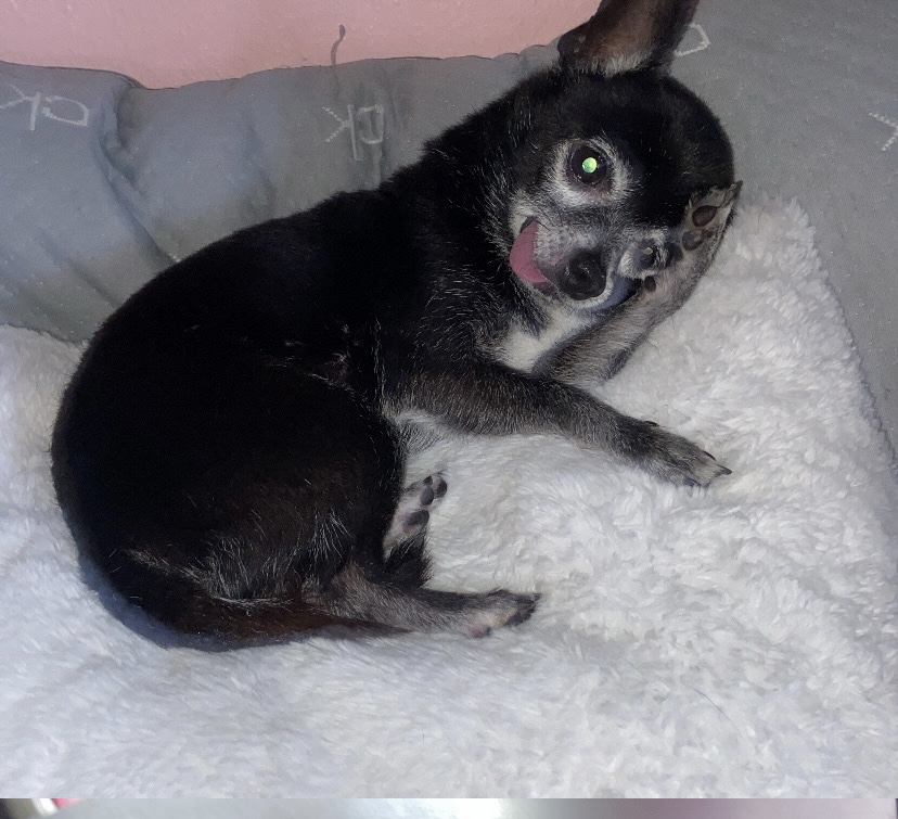 He’s a small Chihuahua with a little bit of white fur since he’s old, he has his tongue sticking out, he’s really small, he has no collar. I let him out to use the restroom but he never ended up coming back like he always does.