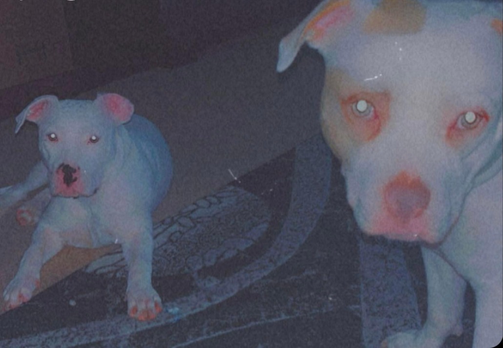 All White Hyper puppy pit bull mix about a year old named snow and Her Mother princess about 2 years old white with brown patches