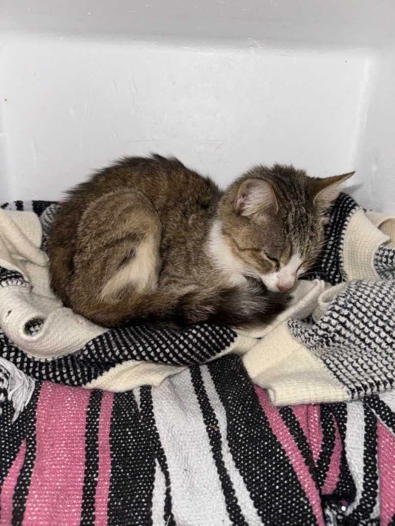 Emaciated socialized tabby, hates bare feet, may have been abused