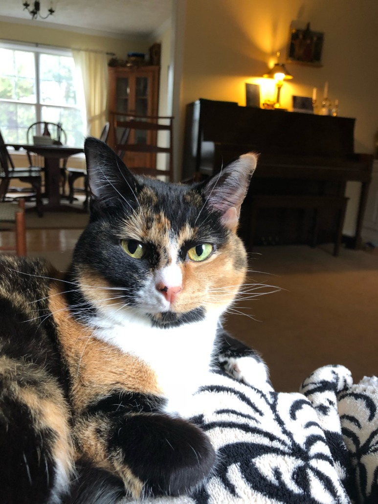Small Calico with rainbow collar. Last seen at home in Ivy Hills near 79th and Allisonville