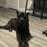 He is a all black male cane corso he had a green Kong collar on when he was lost