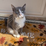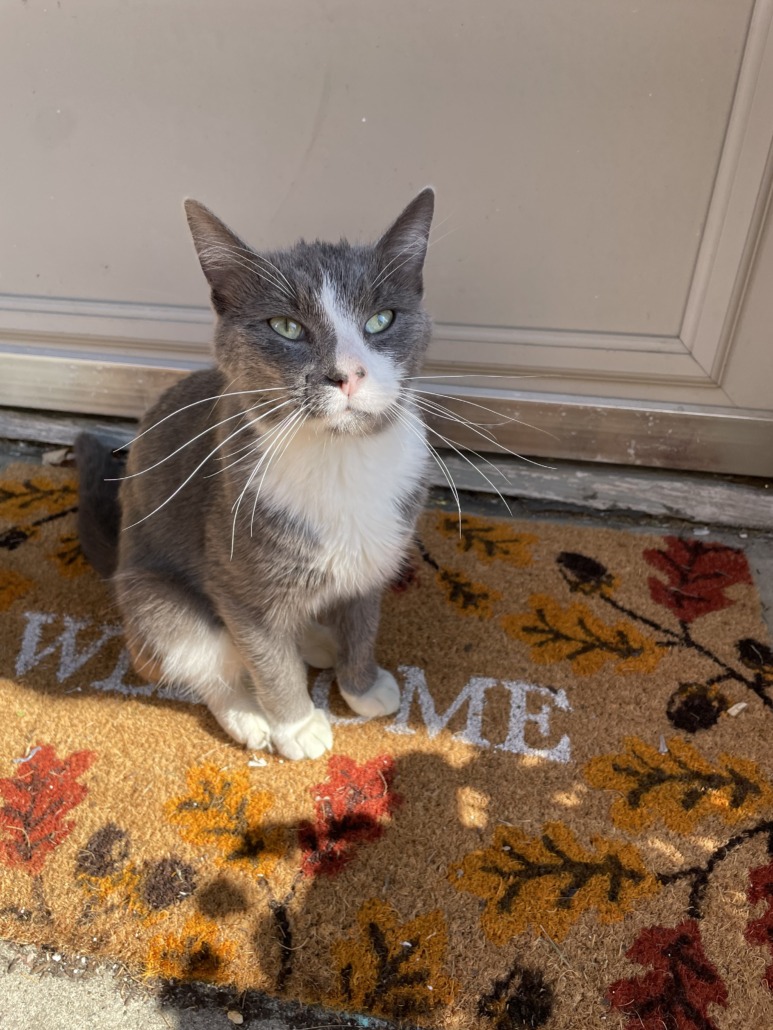 Friendly to people and possibly other cats. Looks skinny and is very hungry. Proof of ownership required. Please contact me if this is your cat.