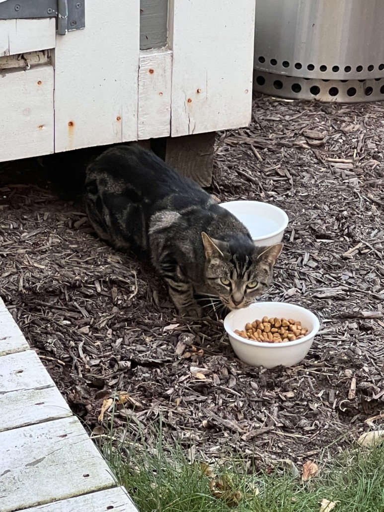 Found, small tabby cat in our backyard in Broad Ripple. Haverford and 61st. Hiding under our shed. We gave food and water, but couldn’t get very close.