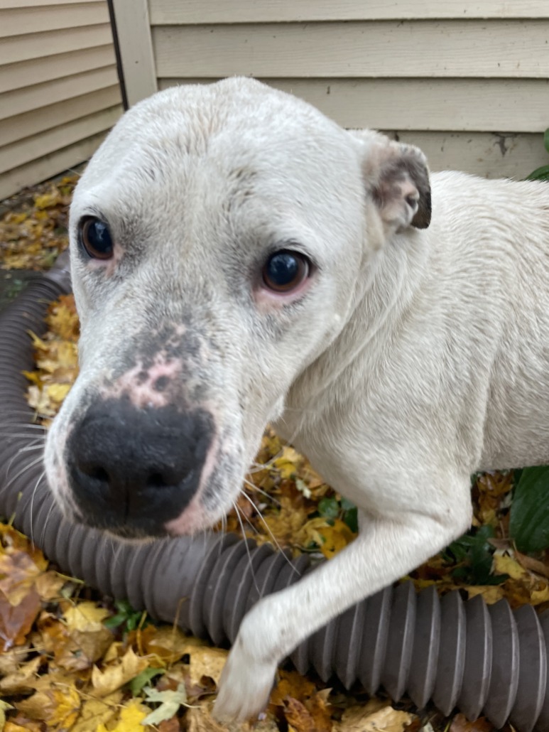 Found near 21st and Emerson. Some brown coloring at the base of her tail. Looks like she has had babies at some point.
