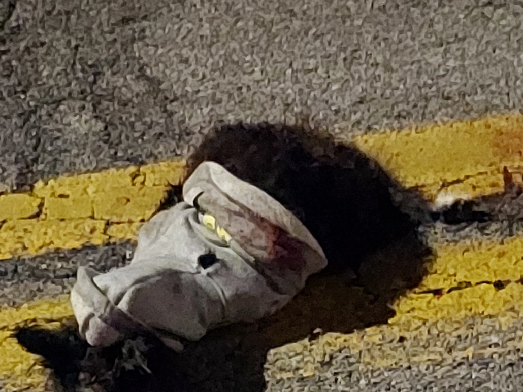 Deceased pet cat. Gray/black color with a GRAY SWEATER. Runner over by vehicle, currently on Churchman Rd and Wade St. 🙁