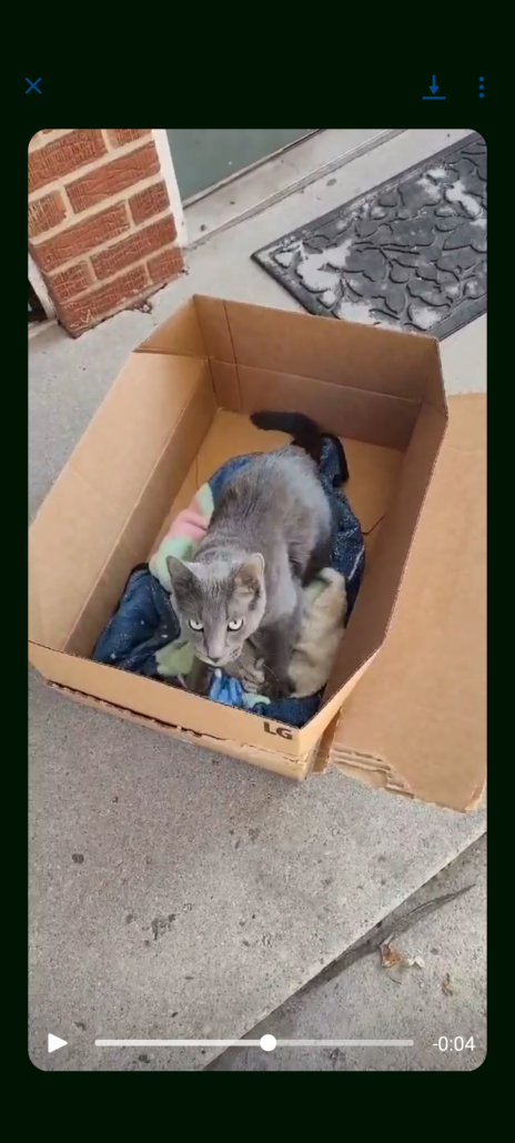 He’s an all Grey large cat, very verbal and loves people but not other cats.
