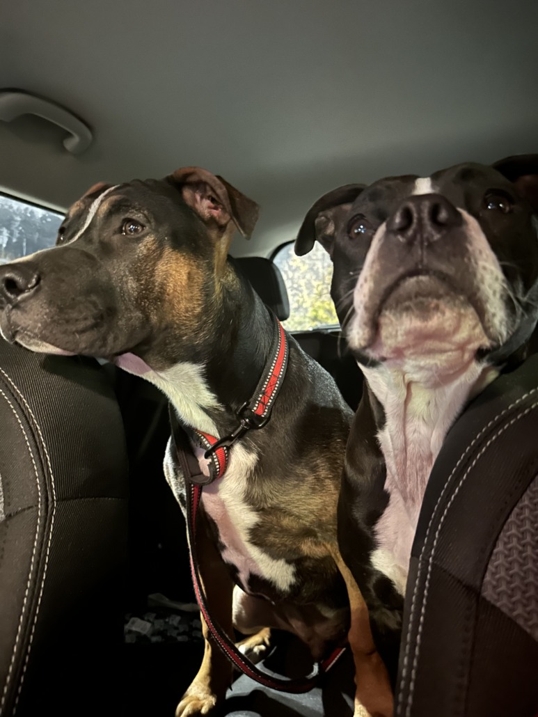 Found both dogs, male and female — male is puppy and intact. Female has had pups. Not microchipped.
