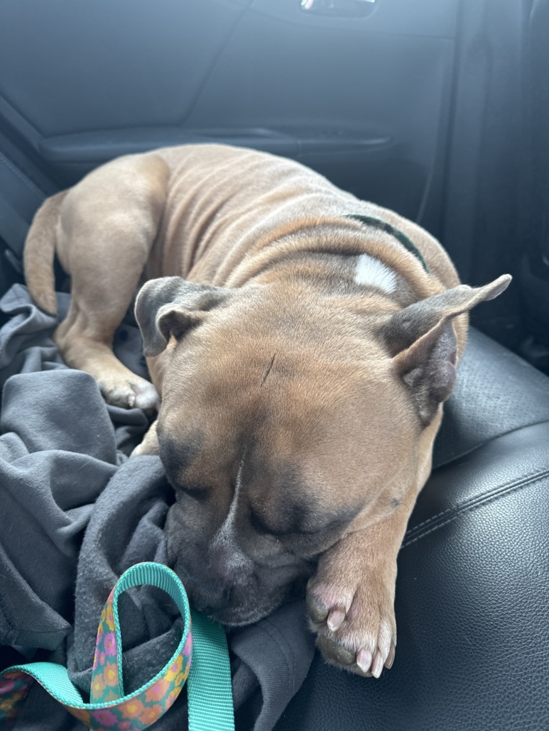 Pet found near 22nd and Delaware. Male small bully with white markings. He’s very sweet and wearing a camo collar. Took to two humane societies and did not have microchip