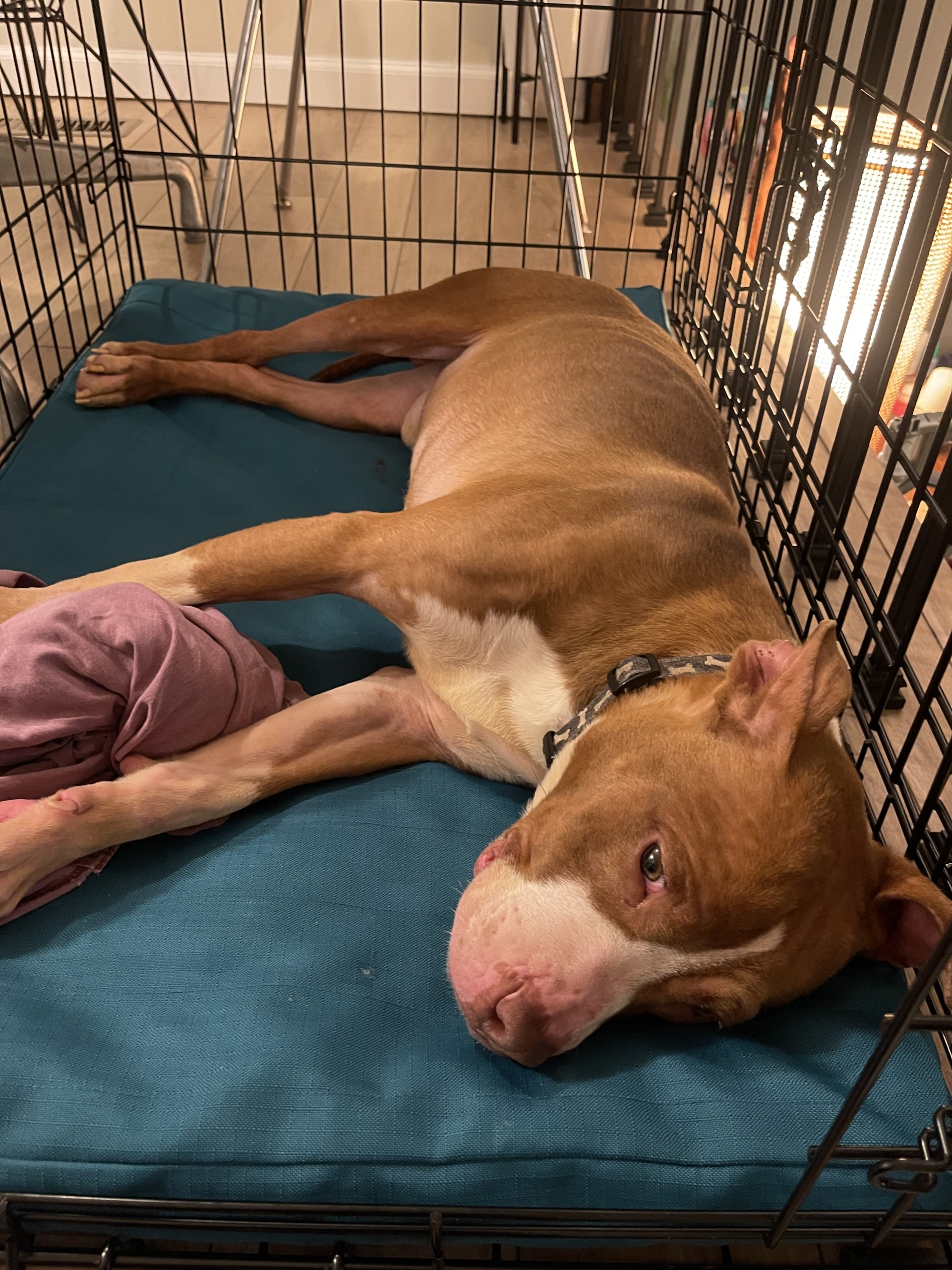If you can call him by a name and he comes, I will reluctantly relinquish him. Red pit found running in traffic, malnourished, with burns from going under cars for protection and warmth. He was pulled from under a running car.