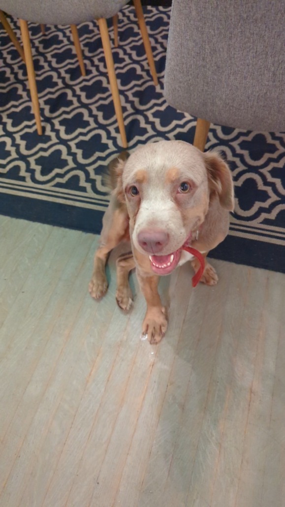 She is sweet, affectionate, friendly towards people. However, she can be scrappy when she needs to be! She’s maybe around 4 years old. She’s spayed. She has a microchip. She came from IndyHumane. She was hanging close with a boy/Shepherd mix/2-ish years old. She was wearing a red collar when found.