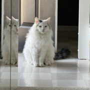 White like snow, raccoon like tail, very furry and light but long. Turkish van mix with Angola.