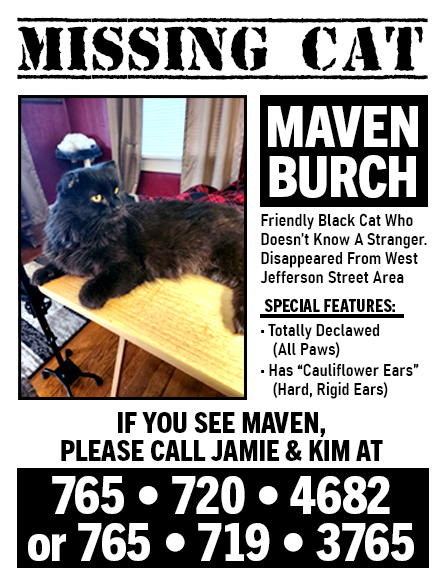 Lost Cat, Alert #80563 Maven missing near 26 West Jefferson Street, Jamestown46147