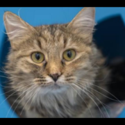 Large grey, black, and orange Maine coon mix. Very friendly. She only has on a black flea collar, no tags.
