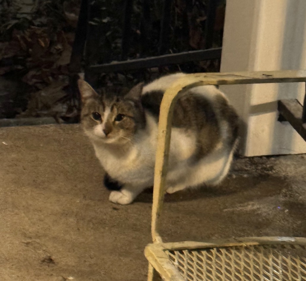 Tabby and white cat spotted near 16th and N Pennsylvania St. Seems skittish but not feral.
