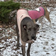 Do these dogs belong to anyone in the Indianapolis area? They were running down woodruff middle accompanied by a Doberman and a pittie mix maybe. I trapped the Dane in my yard but the others ran off.