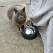 Large male long-haired, totally grey cat. Proof of ownership required.