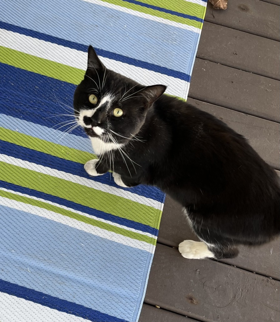 Large tuxedo Tom. Been hanging out occasionally since early November. Appears to be well fed, Friendly and vocal.