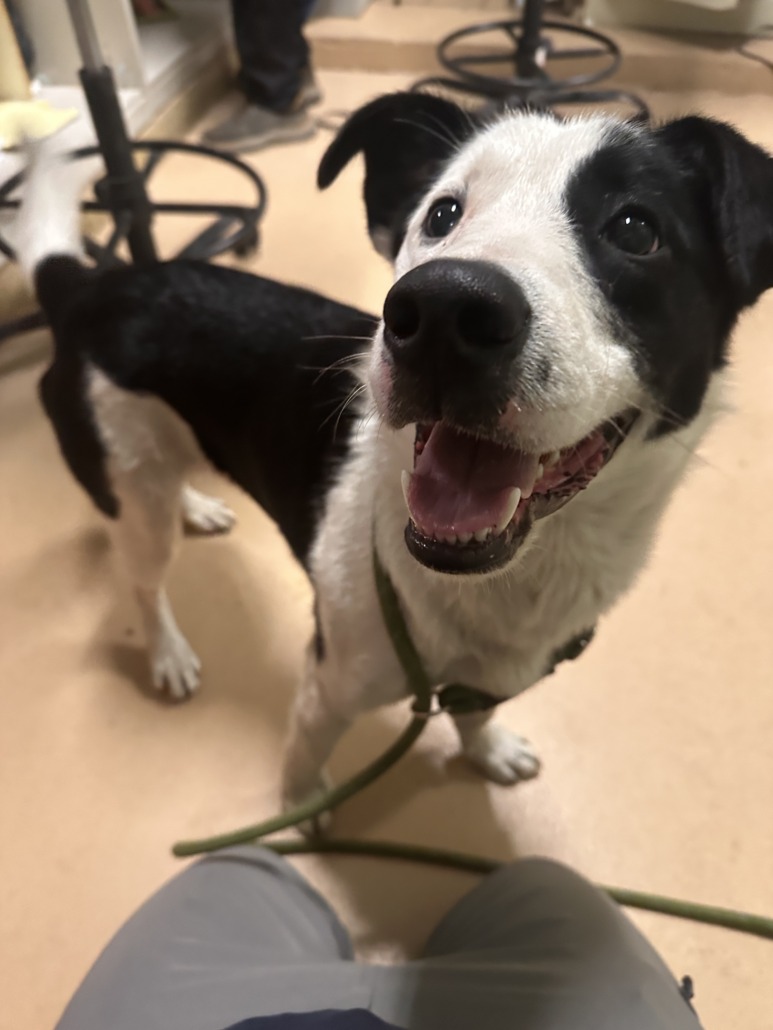 Male, Black and white, boarder collie mix. No chip. Not sure of age. Is at Indianapolis animal care services now.