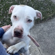 White dog – appears to be pit mixed with terrier. Must provide proof of ownership. Also appears to have had puppies.