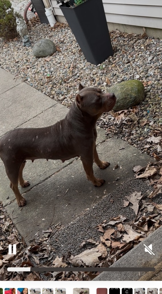 Growling female dog, un approachable brown pit bull in front of my door 12-14 blocking our front door on 12/14. And again roaming 12/15