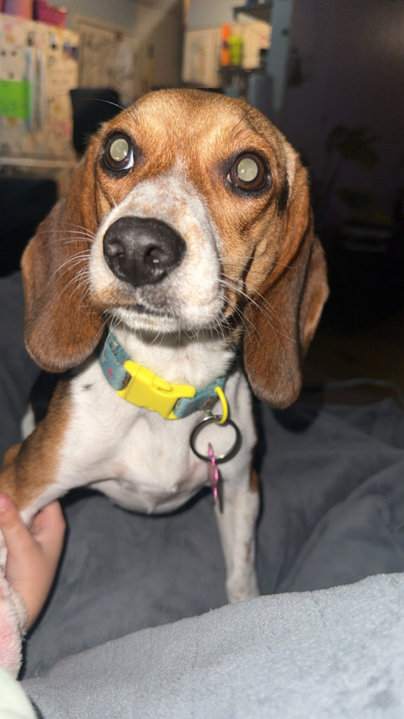Small female beagle. Goes by Ellie. She’s shy but super nice. She is currently in heat. She got away from my daughter on a night walk. So she doesn’t have her collar on which has my name and number.