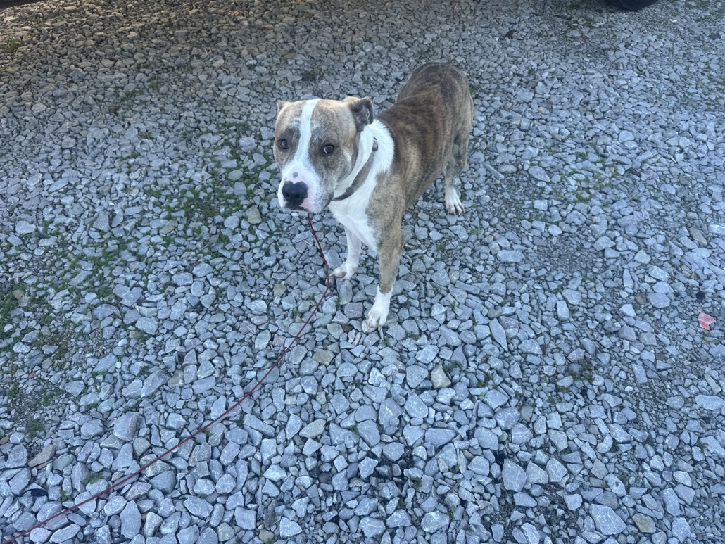 Male pitbull (mix) found in Whiteland. Can sit, shake, obey commands.