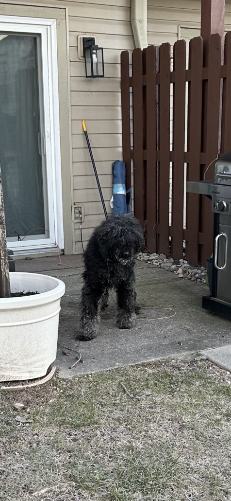 Looks like a poodle mix. Matted. Bit of a limp. I think it had a collar on. I was unable to contain him.