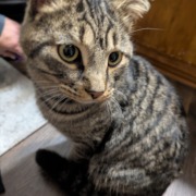 Brown, and black male Tabby. Found off of boys out road in Lawrence. Neutered. Proof of ownership required.