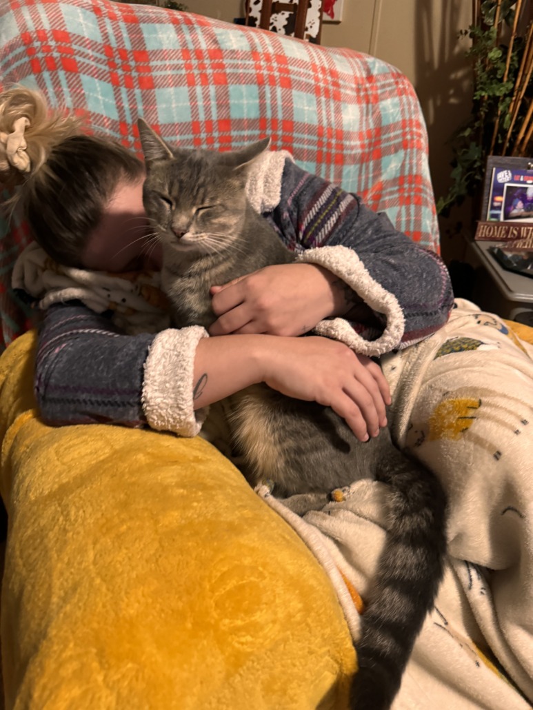 A very loving unfixed male grey cat! He’s only a year old but larger than normal at that age. Super sweet! Bring our boy home!