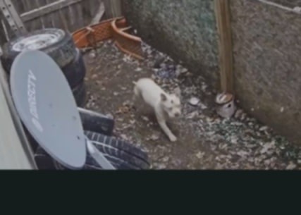 All White male pocket bully, Only Brown spot on top of his head. He is chipped.