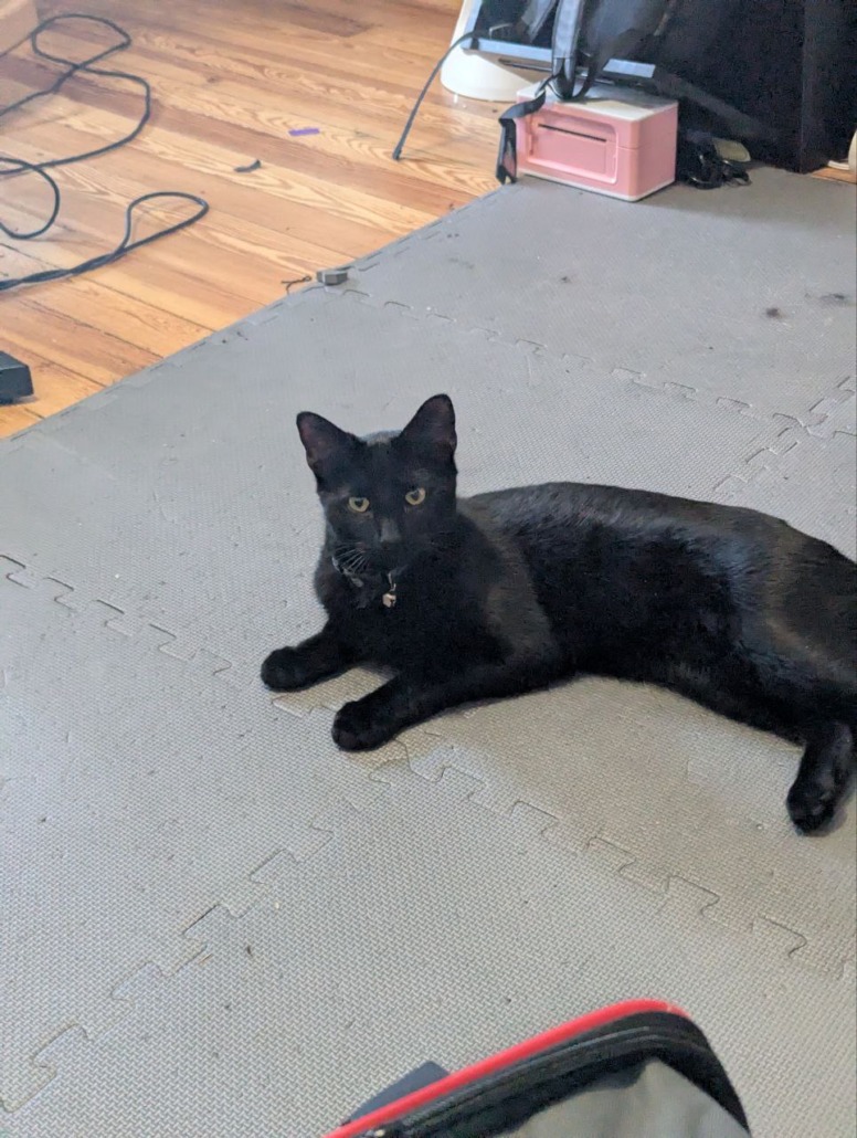 Medium sized Male cat found with a leopard print collar with a small bell. Not micro-chipped. Very friendly.