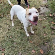 White male pitbull 50 lb. Neutered. Redness and irritation under belly and legs.