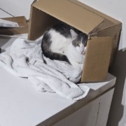 Grey and White Tabby, long face and minimal tartar on teeth, approximately 1-2 years old, very loving and affectionate, not neutered or microchipped.