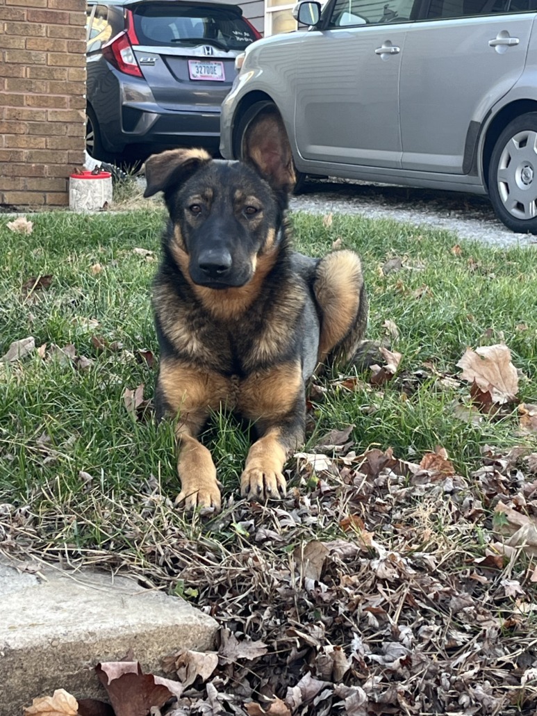 Beautiful young german shepherd dog. No collar. Inquisitive.