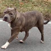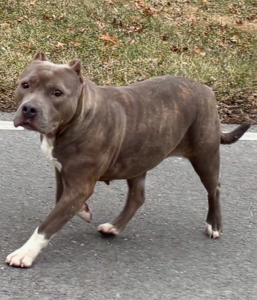 Female Pit mix, brown/brindle, no collar, on the run. Avoidant behavior but zero street/traffic sense. Seen running IN TRAFFIC in 6600 block of Spring Mill Rd. between 10 & 11 AM; also sighted in Holiday park approximately 11:15 AM. We have not been able to capture her.