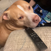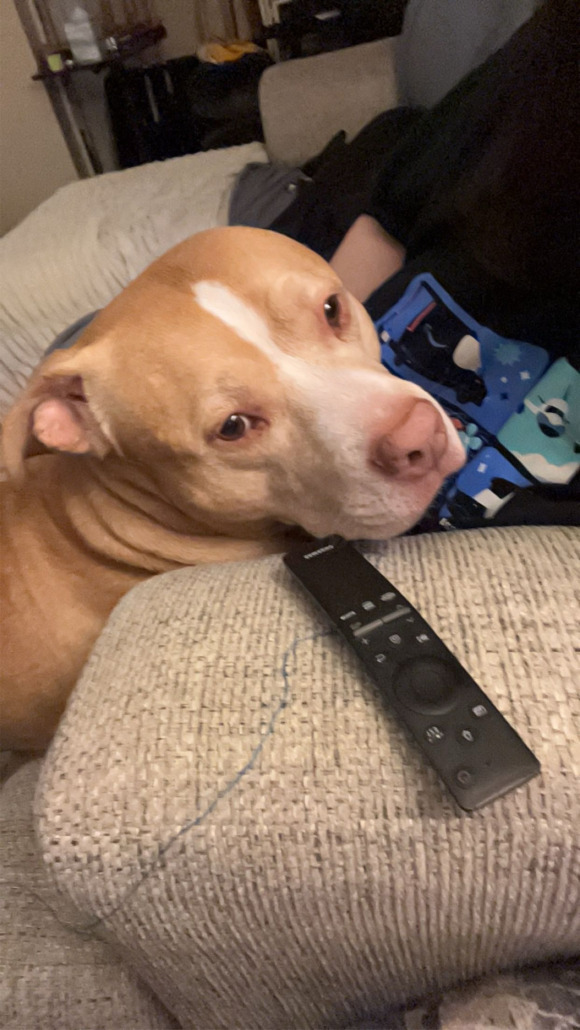 Red nose pit. Does not like other dogs or small animals. People friendly.