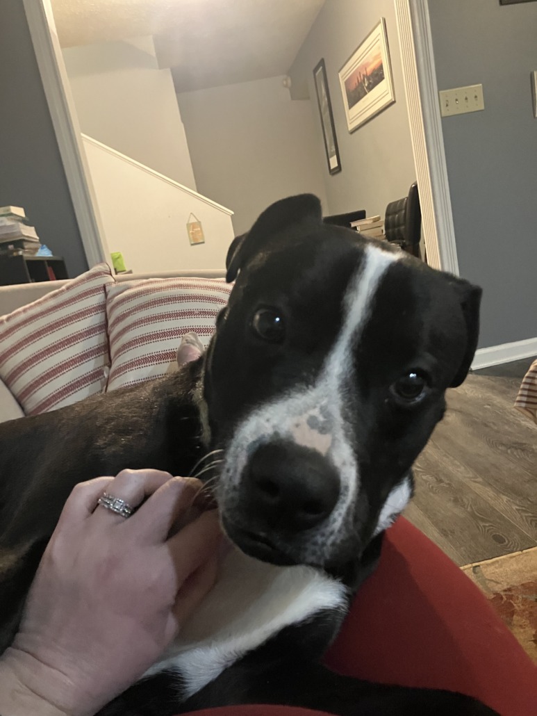 Black and White pit found under a tree in the snow on 30th and Euclid. Proof of ownership required.