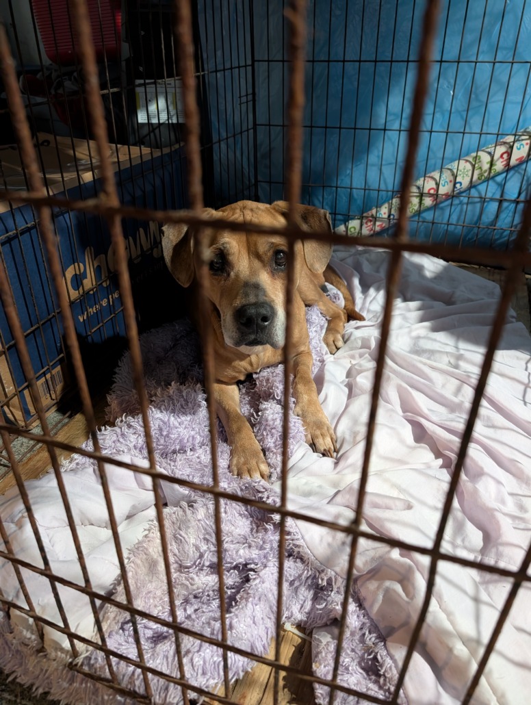 Found this dog laying on the sidewalk at the gas station. I left and came back and he was still laying there. He was malnourished and shivering and so I brought him home. I can not keep him because of my other animals.