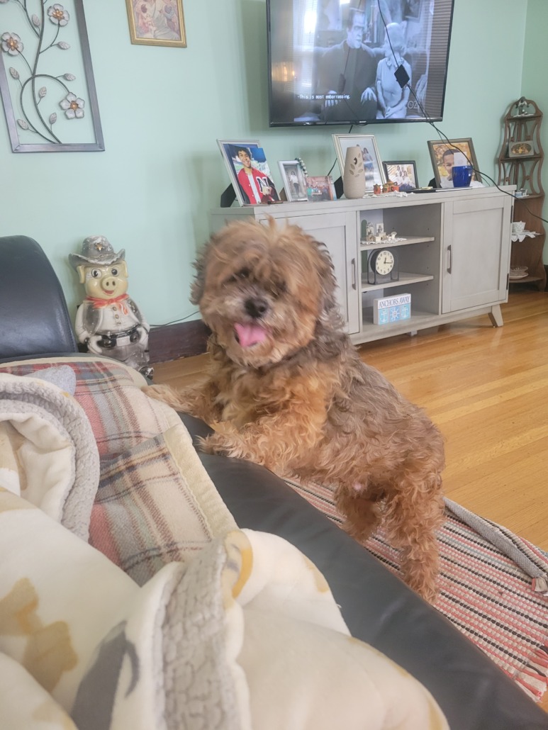 small dog found limping on the sidewalk. someone driving by picked him up and brought him to my house wondering if it was my dog. I let him in so he wouldn’t freeze. Hoping to find his owner.