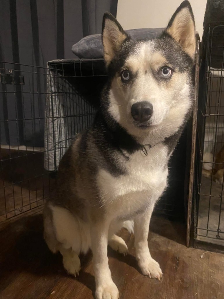 She is a gentle Husky. May come if you call her name but is very shy. Was last seen traveling with her sister, a St Benard (Stella) who is also very friendly.