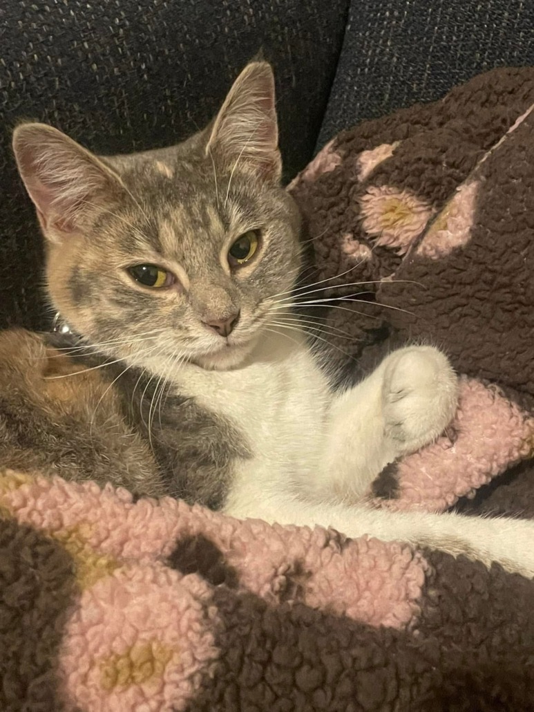 Description: Citrus is a friendly orange tabby with a collar and bell. She may respond to her name and is very playful.