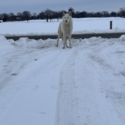 This dog is in my driveway. Near corner of 275 East and 300 South Greenfield.