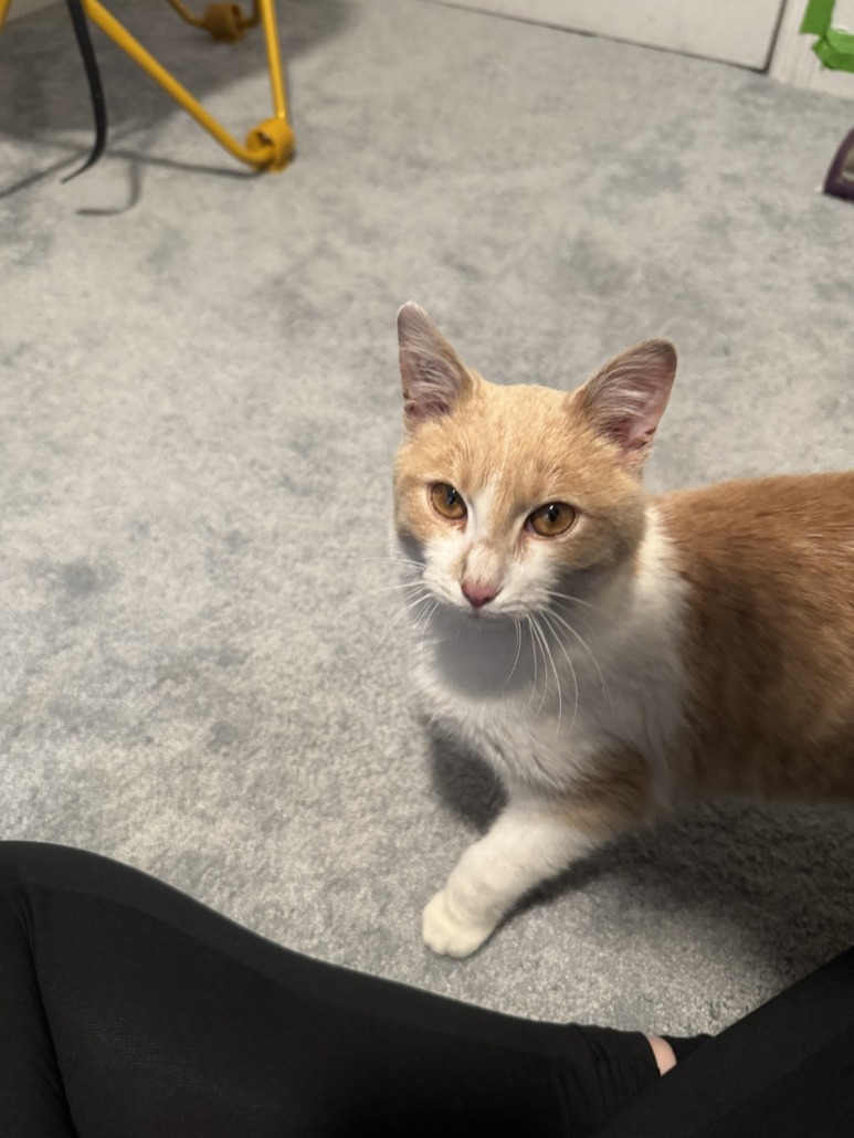 I found this 6-8 month old male cat in the Martindale Brightwood area. He’s not microchipped. He’s white and orange with light brown eyes.