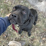 Male cane corso. Does not have a chip and is intact. All black but has small white spot on neck. Has a collar but no tags. Proof of ownership is required