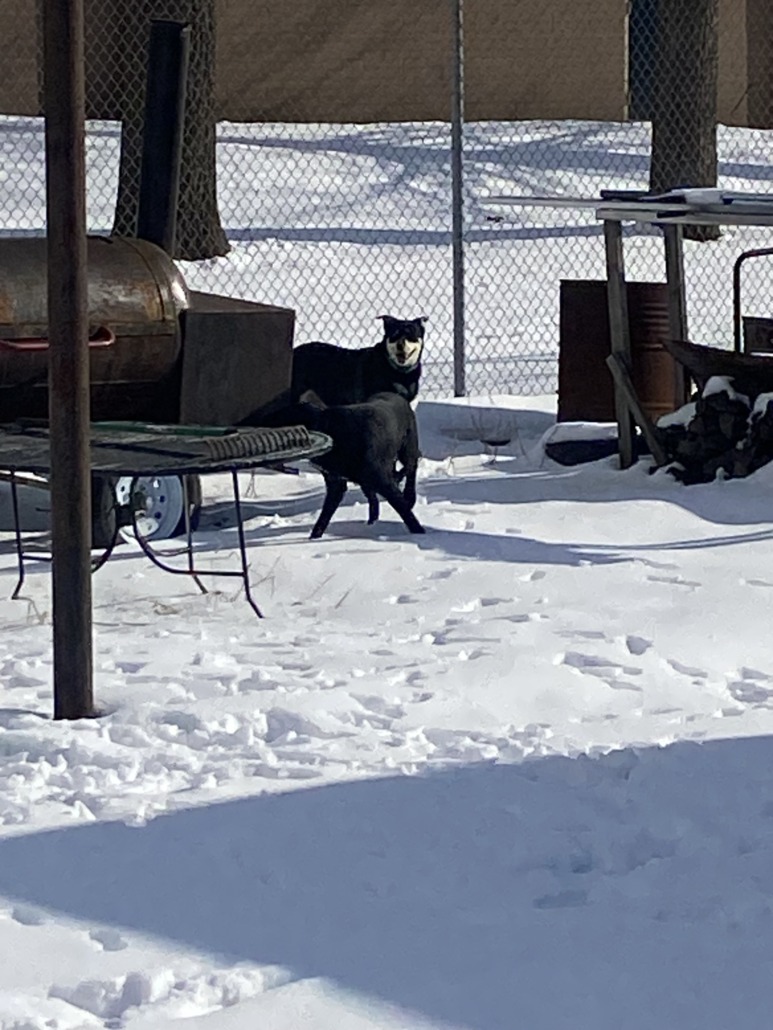 Two dogs running around the business next door with collars on, keep trying to cross the road into the neighborhood across the street on English Ave but almost getting hit