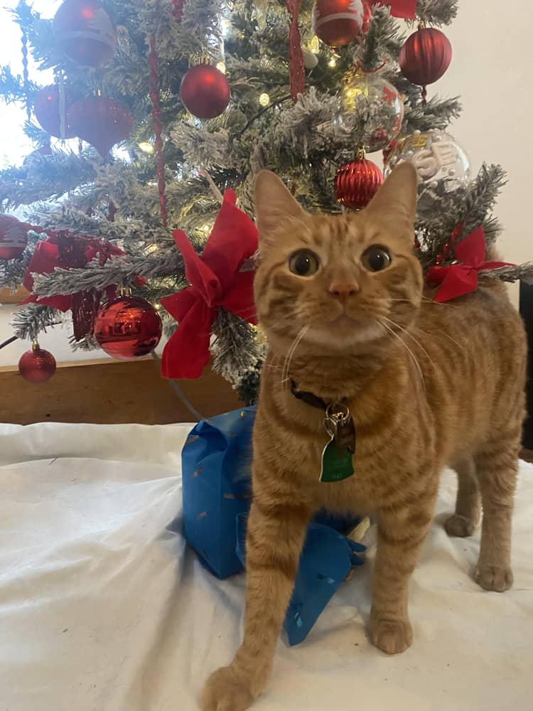 Orange tabby. Six years old. Very vocal. Very friendly. Clean, vaccinated and microchipped. He’s been bolting for the door when I get home and today my hands were full and couldn’t catch him. Please return.
