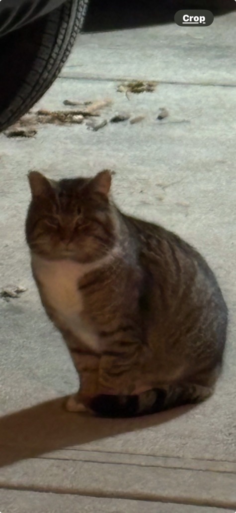 This cat has been hanging around our garage but no collar, looks well fed so maybe could have gotten out of someone’s house?