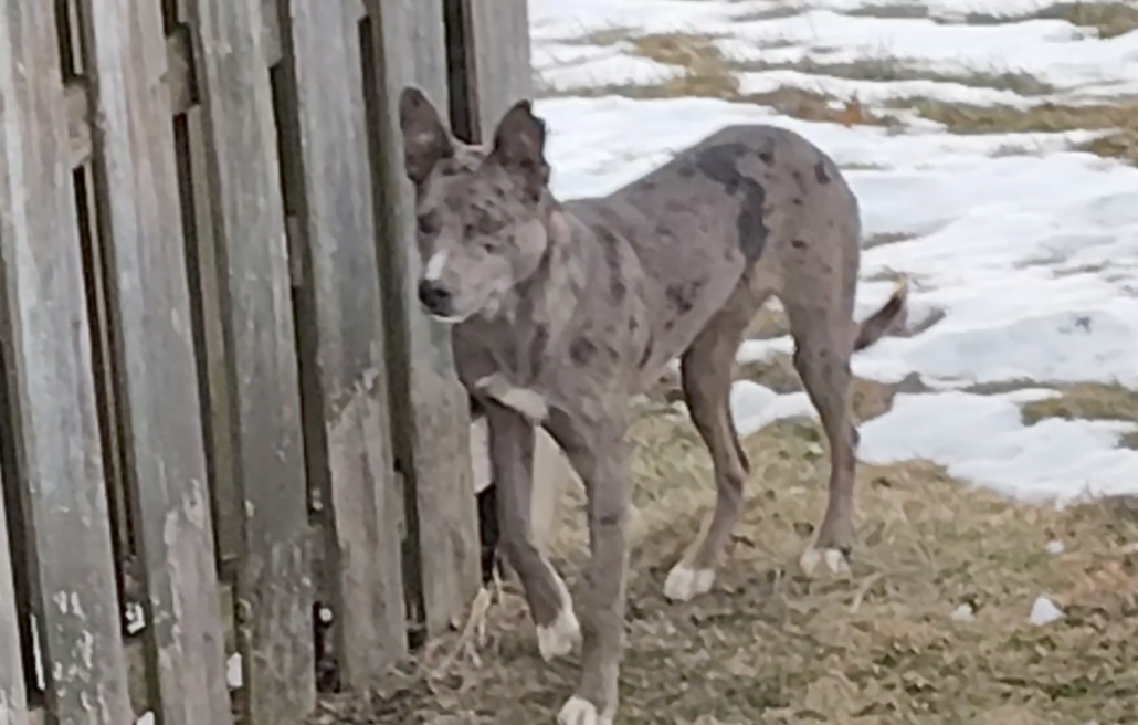 Approx 8mo Cowdog or Koolie with Blue Merle coat was looking for owner at Veterans Park since Sunday morning. Very smart but shy. I approached and he ran to a property where the homeowner felt he had to shoot him in the rear right quarter. He has received medical attention and is looking for his owner still
