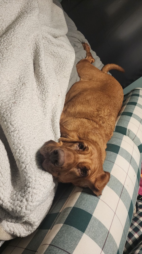 She’s all red. No markings. She is skittish to strangers and men.